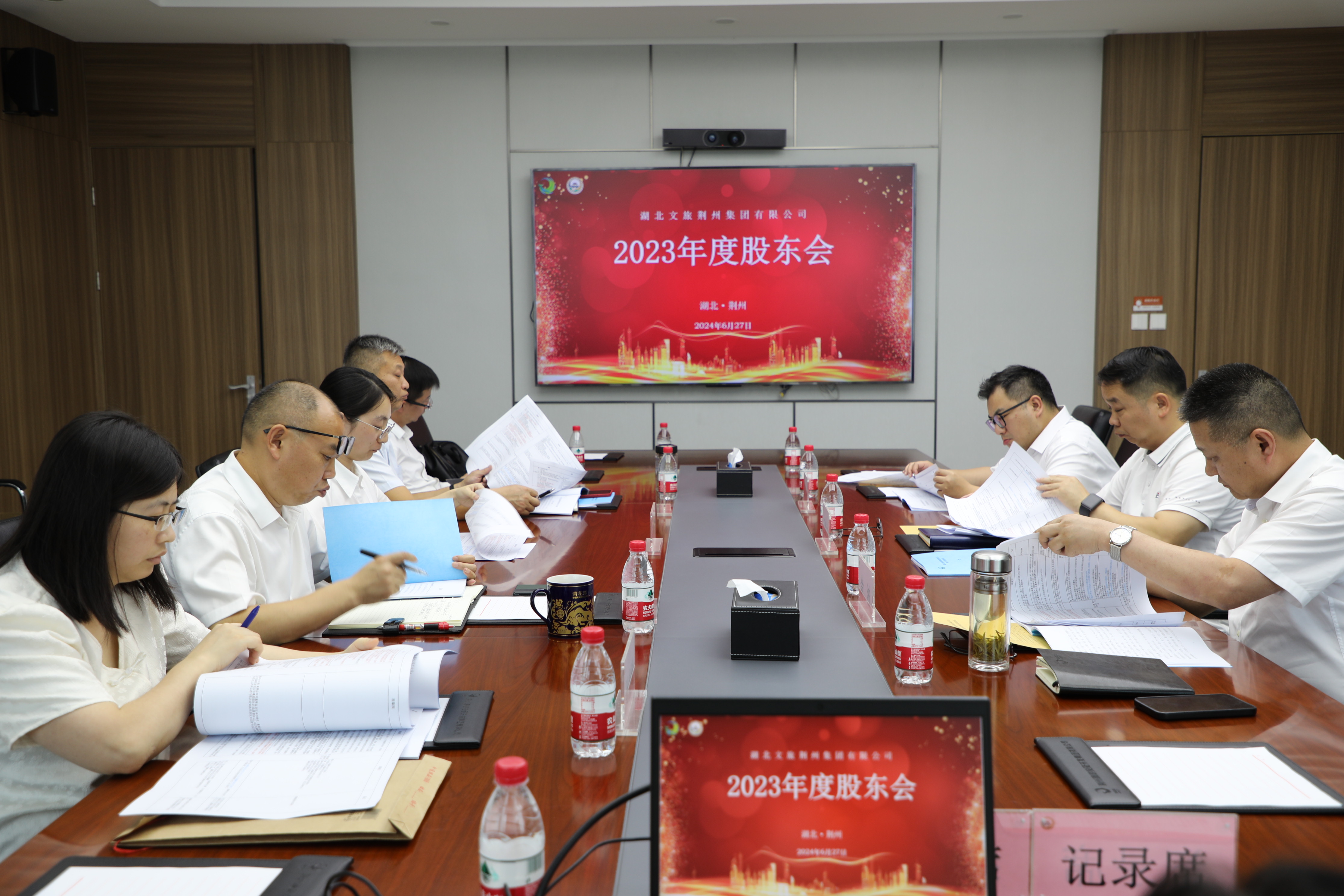 6月27日,湖北文旅荊州集團第一屆董事會2024年第二次會議、2023年度股東會在公司1號會議室召開。按照《公司法》和《公司章程》有關規定,會議由黨委書記、董事長王夢力主持,股東代表、董事會成員參加會議,公司高級管理人員、相關部室負責人列席會議。